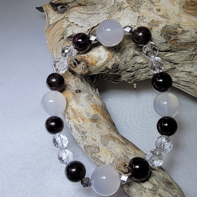自分の気持ちを伝える勇気や、関係を前に進める力を与えてくれるカジュアルなお守りです。カルセド二の優しいピンク色が、愛情や思いやりを表現し、ガーネットの深い赤色が情熱と活力を授けます。気になる人との関係性を発展させるための組み合わせです。 このお守りを身につけることで、自分の心の声をしっかりと伝える自信や勇気が湧いてくるでしょう。さらに、カルセドニーの豊かなエネルギーがふたりの結びつきと信頼性を高め、ガーネットの力強いエネルギーが前向きな変化を促し、関係を進展させる手助けをしてくれます。 このお守りは、気になる人との素敵な関係を築くためのお守りです。日常のコーディネートにも合わせやすいデザインで、いつも身につけることができます。大切な人との関係を前進させたい時や、心の声を届けたい時には、ぜひこのお守りを身につけてみてください。 ※パワーストーンは個別の効果を保証するものではありません。効果の実感は個人差があります。